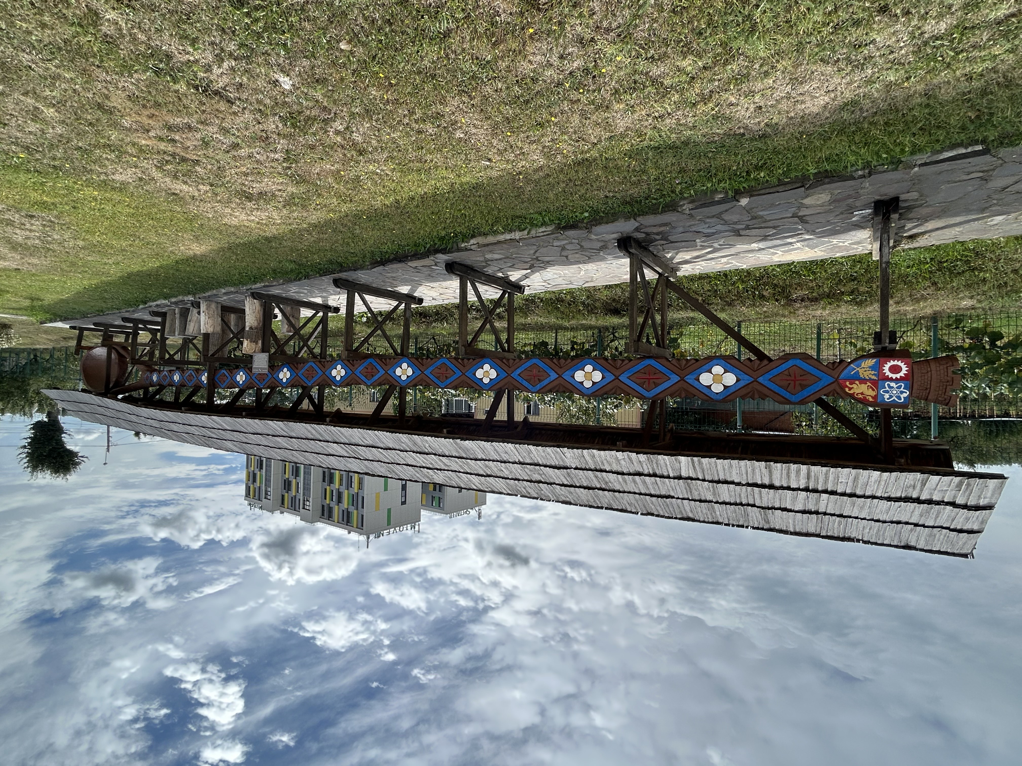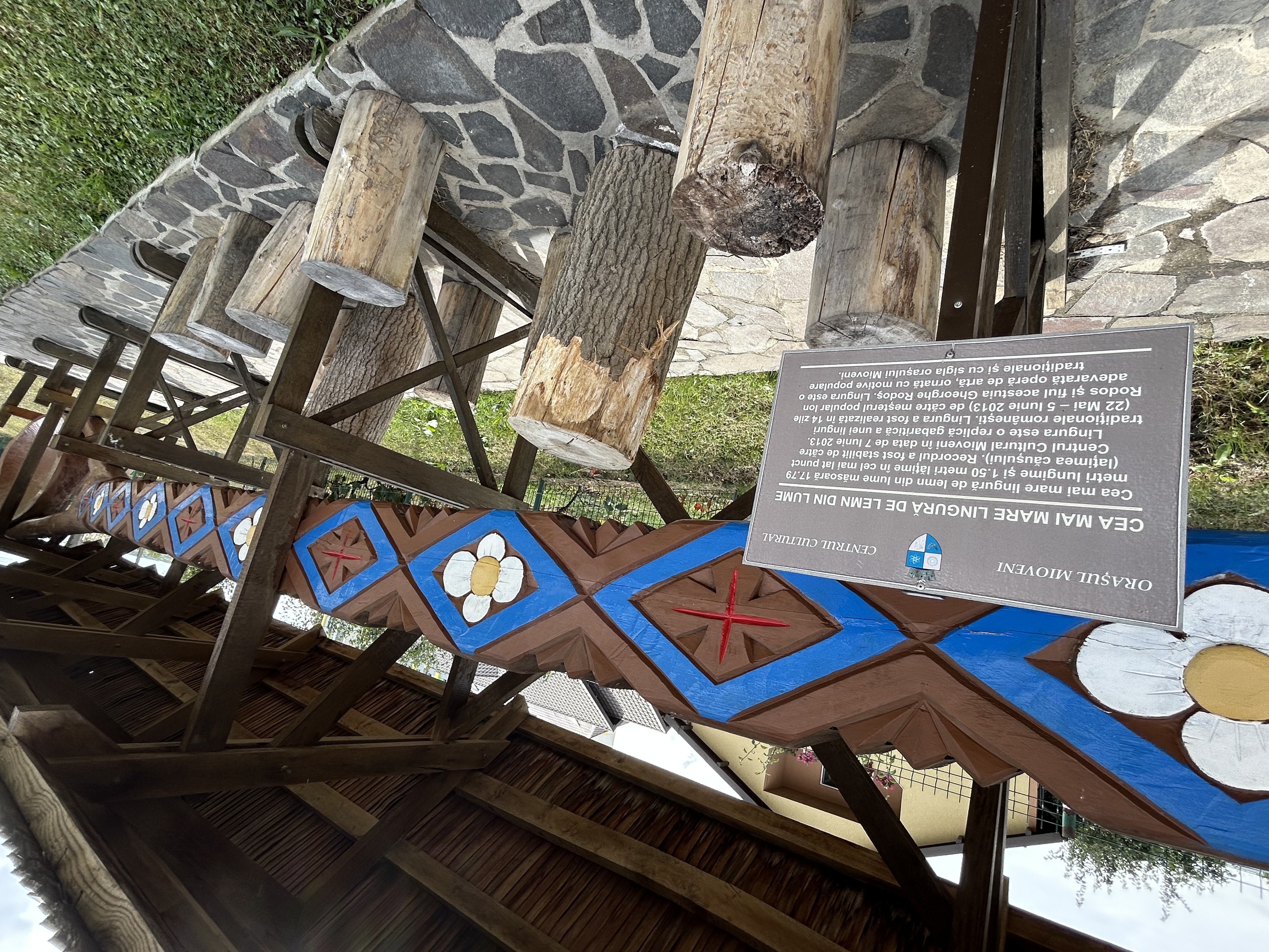 Lingura are o lungime de 17,79 metri și o lățime de 1,50 metri în zona cea mai amplă, reprezentând o replică de mari dimensiuni a unei linguri tradiționale românești. Realizată din lemnul a doi arbori de tei, între 22 mai și 5 iunie 2013, de către meșterul popular Ion Rodoș împreună cu fiul său, Gheorghe Rodoș, lucrarea este considerată o veritabilă operă de artă. Aceasta este decorată cu motive populare tradiționale și poartă sigla orașului Mioveni.